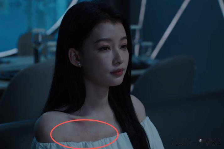 只不过,孙怡似乎是对穿的白色露肩裙子过敏,衣领处红了一大片,看得人有点出戏。