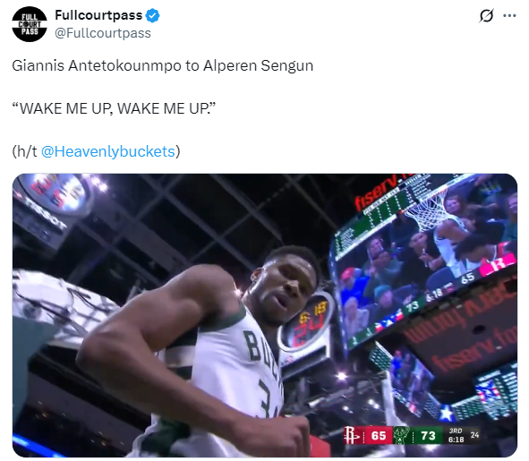 易边再战金智股配,第三节字母哥彻底开启攻击模式,持球撞翻申京打成不讲理2+1,然后冲着镜头高呼:快叫醒我,快叫醒我;字母哥更是强吃申京,杀到内线晃飞申京并且隔扣阿门,1打3同样不可阻挡,单节7中5爆砍14分,多次暴扣虐筐点燃球馆。